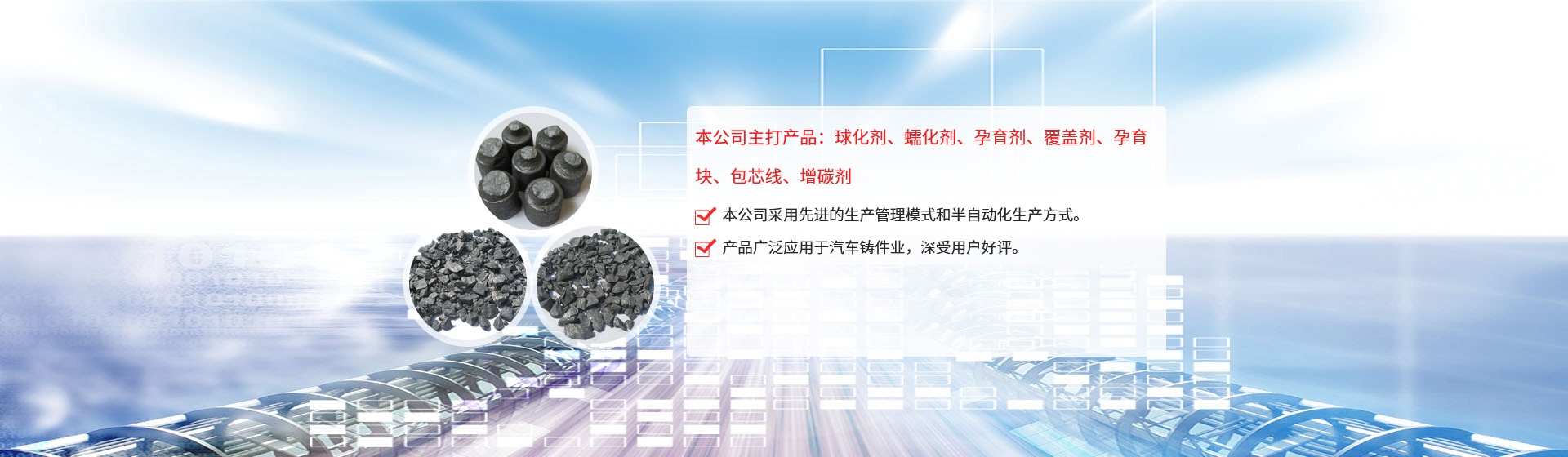 公司引進(jìn)日本企業(yè)的生產(chǎn)管理模式,半自動(dòng)化生產(chǎn)方式。目前生產(chǎn)能力:球化劑250T/月、孕育劑300T/月、鑄造相關(guān)品200T/月。為嚴(yán)格控制產(chǎn)品質(zhì)量,公司采用國內(nèi)的ICP-AES等離子體發(fā)射光譜儀對(duì)采購原